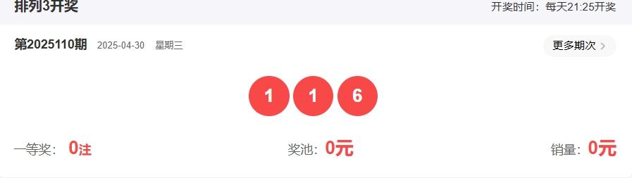 排列三第2025110期开奖回顾:开奖号码:116 形态:组三