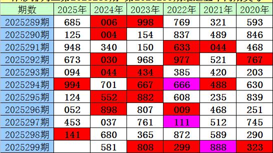 夏姐体彩排列三第2025299期奖号推荐: