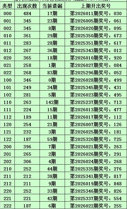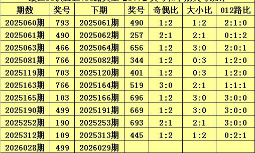 • 上期回顾:体彩排列三第2026028期开出奖号:499,其012路比为2:1:0,奖号012路类型为:100。
