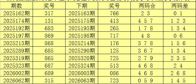 从以上统计可以看出,十个位两码合差4与2同时出现之后其下期两码合差表现最热的4个分别为:1237,本期十个位两码合差可以参考这四码中的数据。