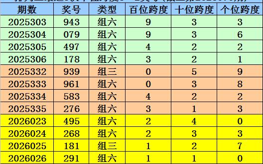 第2025332-第2025334期奖号:939、961、583,其下期奖号为:276,中位号码跨度为3;