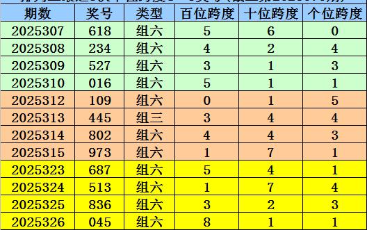 第2025323-第2025325期奖号:687、513、836,其下期奖号为:045,末位号码跨度为8;