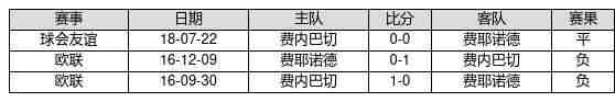 费耶诺德 VS 费内巴切两队近10年的交战次数为3场,费耶诺德0胜1平2负,赢球概率为0.0%,平局概率为33.3%,输球概率为66.7%。