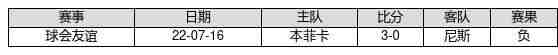 尼斯 VS 本菲卡两队近10年的交战次数为1场,尼斯0胜0平1负,赢球概率为0.0%,平局概率为0.0%,输球概率为100.0%。