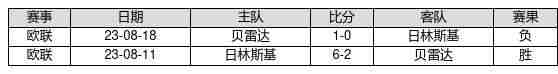 日林斯基 VS 贝雷达两队近10年的交战次数为2场,日林斯基1胜0平1负,赢球概率为50.0%,平局概率为0.0%,输球概率为50.0%。