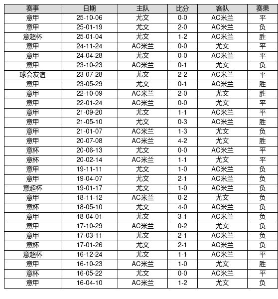 AC米兰 VS 尤文两队近10年的交战次数为29场,AC米兰6胜10平13负,赢球概率为20.7%,平局概率为34.5%,输球概率为44.8%。
