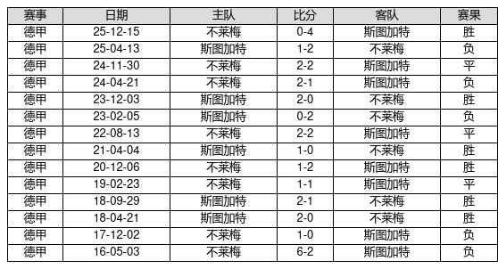 斯图加特 VS 不莱梅两队近10年的交战次数为14场,斯图加特6胜3平5负,赢球概率为42.9%,平局概率为21.4%,输球概率为35.7%。