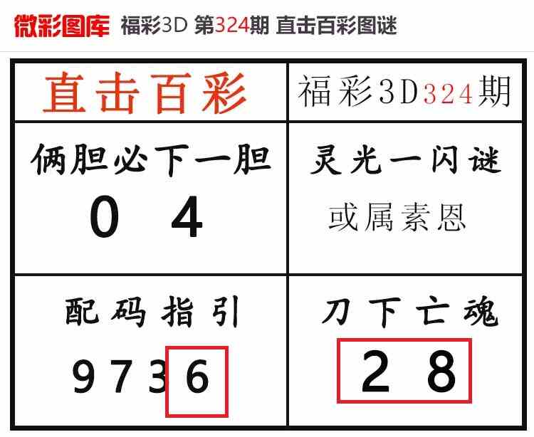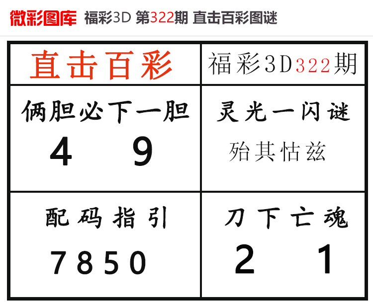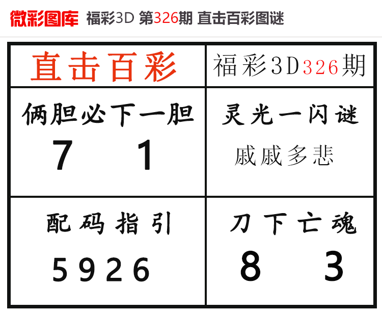 • 25326期:福彩3D【直击百彩】微彩图谜 参考