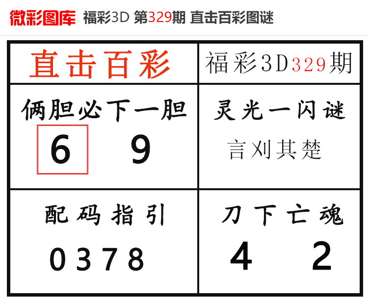 • 25330期:福彩3D【直击百彩】微彩图谜 上期胆码红6