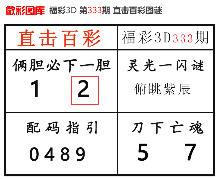 • 25334期:福彩3D【直击百彩】微彩图谜 上期胆码红2