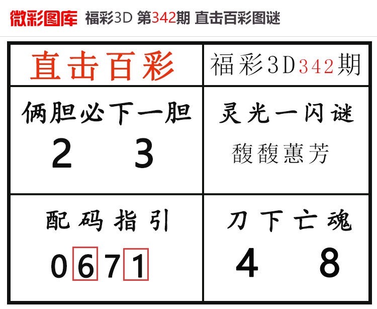 • 26023期:福彩3D【直击百彩】微彩图谜 上期配码红7、杀码红