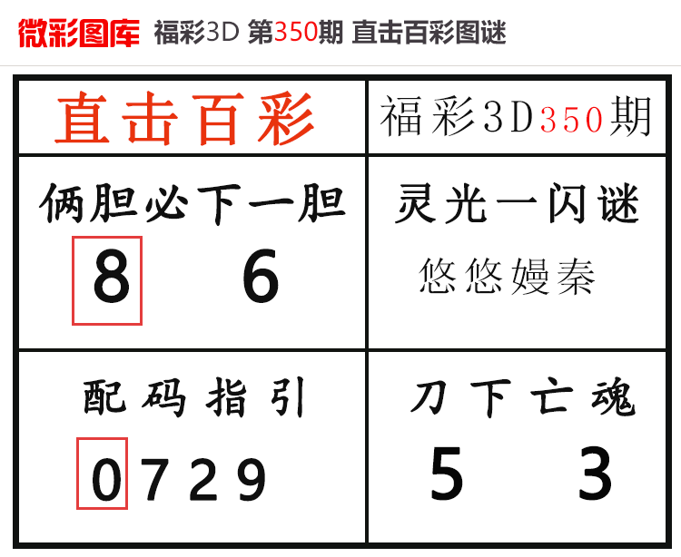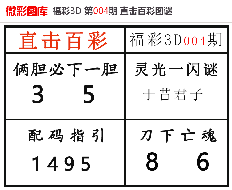 • 26004期:福彩3D【直击百彩】微彩图谜 上期胆码红6、杀码红