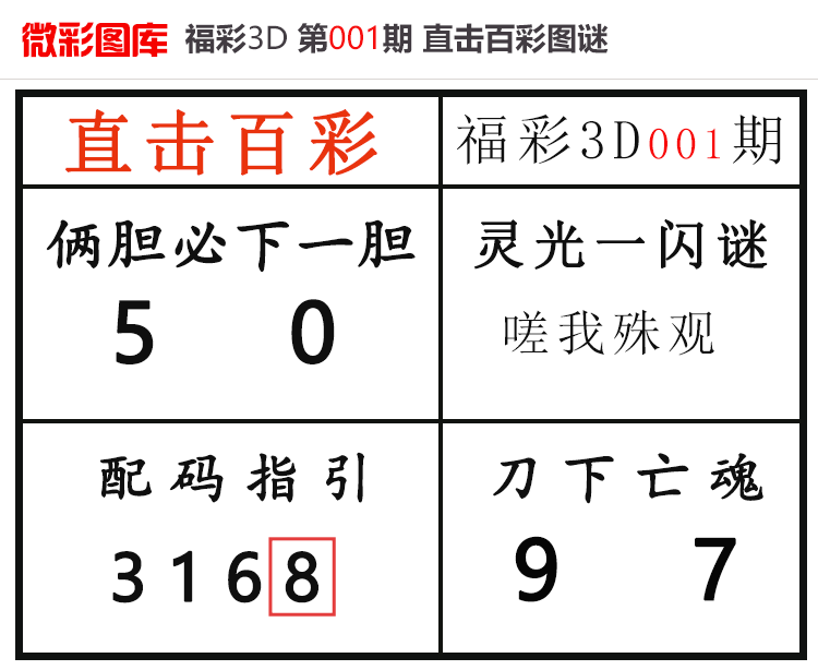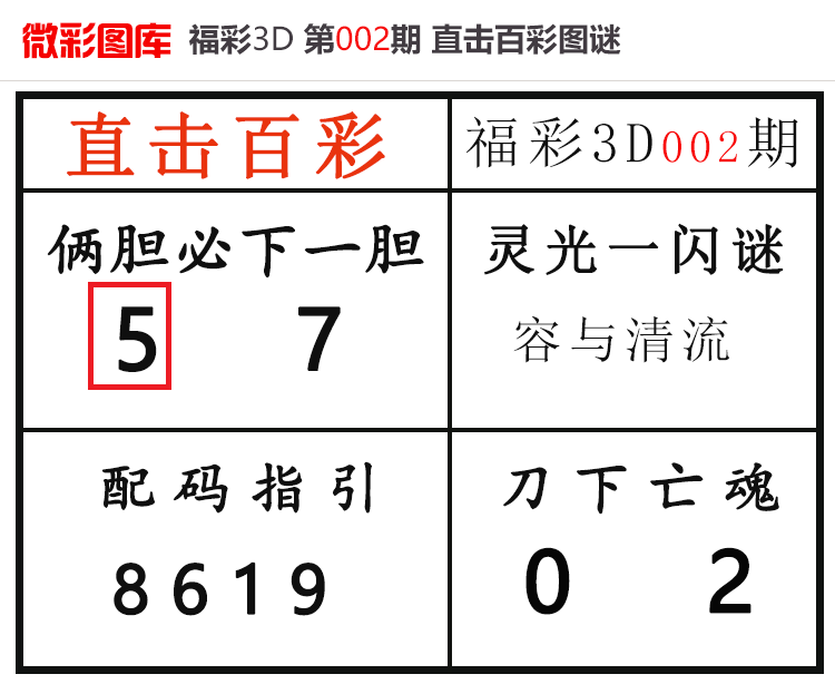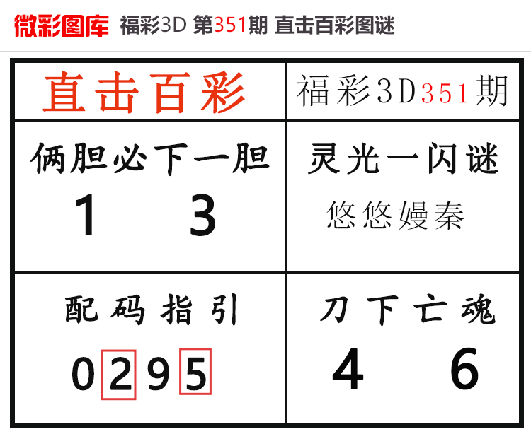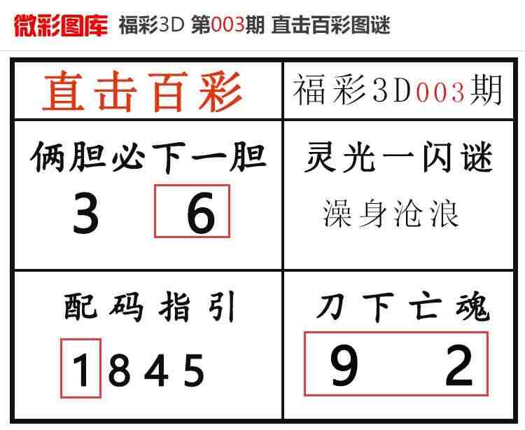 • 26020期:福彩3D【直击百彩】微彩图谜 上期杀码红、胆码红2