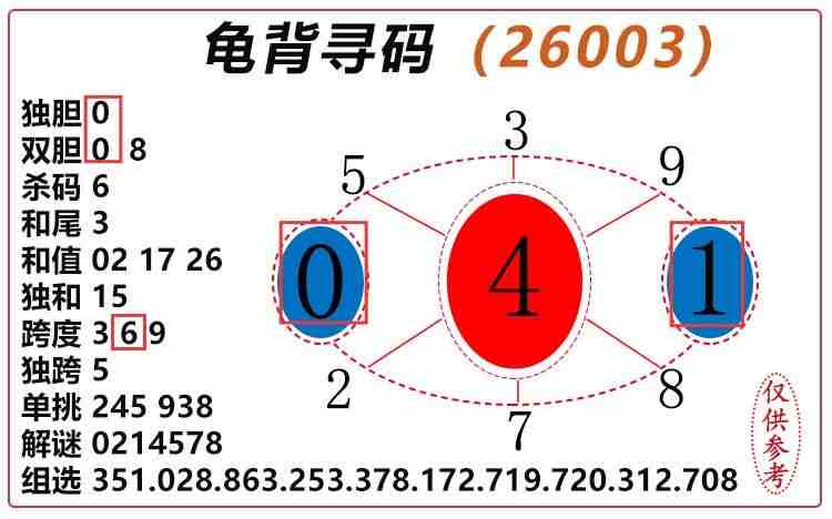 26003期:3D图谜 开601 胆码红0、跨度红