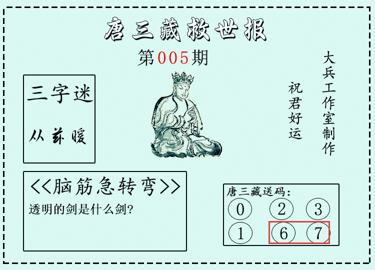 • 26006期:福彩3D【唐三藏】微彩精华字报 上期送码67