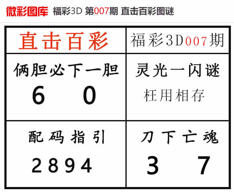 • 26007期:福彩3D【直击百彩】微彩图谜 上期胆码红,杀码红