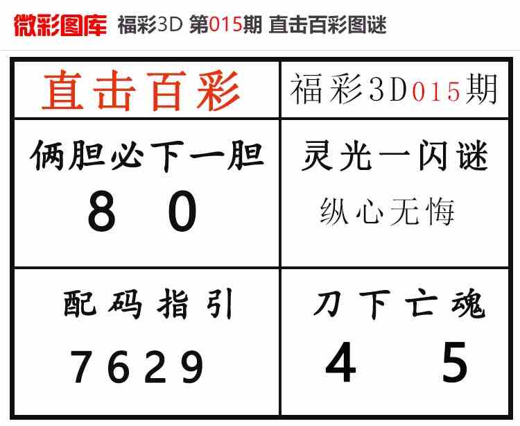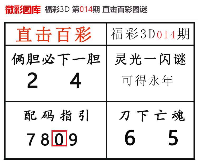 • 26020期:福彩3D【直击百彩】微彩图谜 上期杀码红、胆码红2