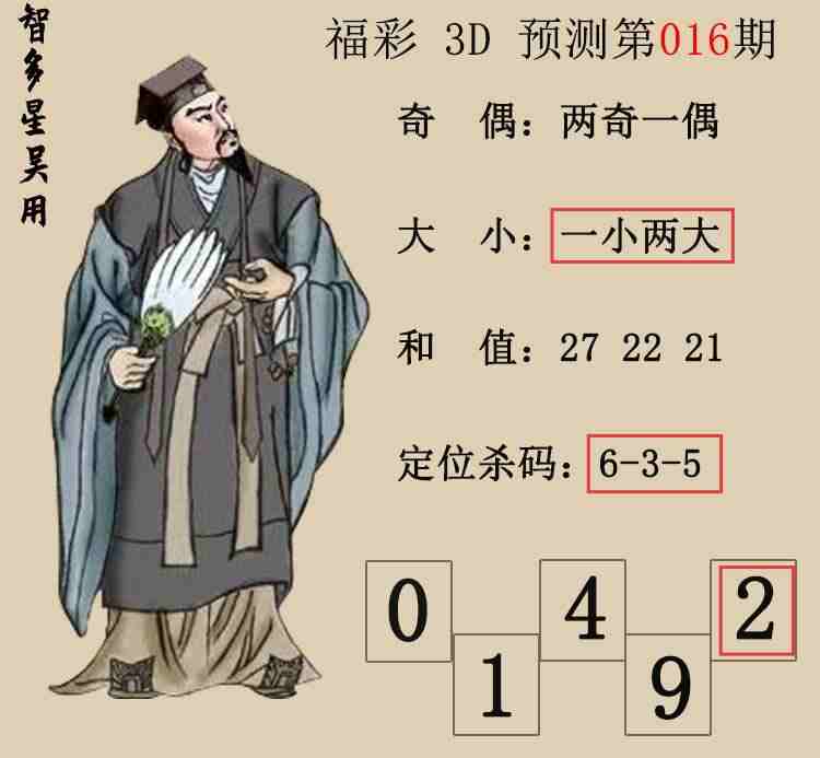 • 26020期:福彩3D【智多星吴用】预测图 上期胆码红3、杀码红