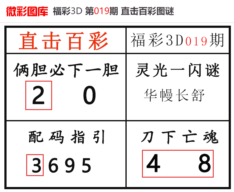 • 26020期:福彩3D【直击百彩】微彩图谜 上期杀码红、胆码红2
