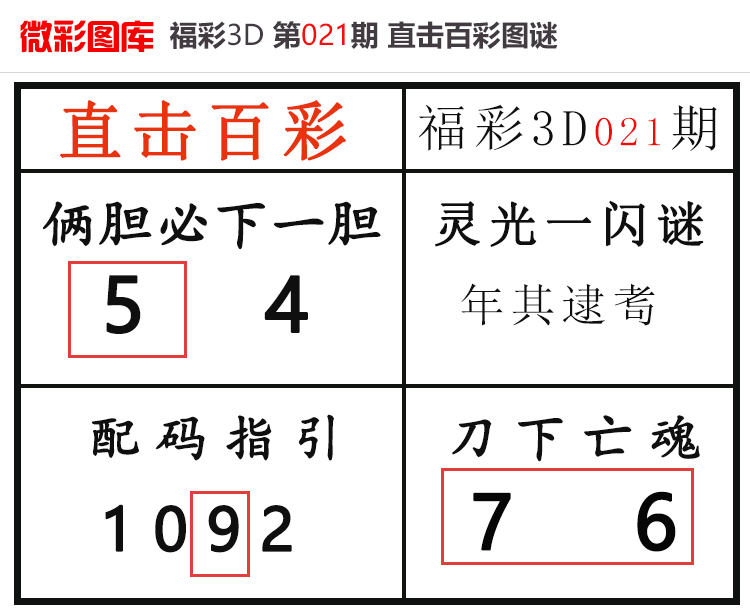• 26021期:福彩3D【直击百彩】微彩图谜 上期杀码红、胆码红6