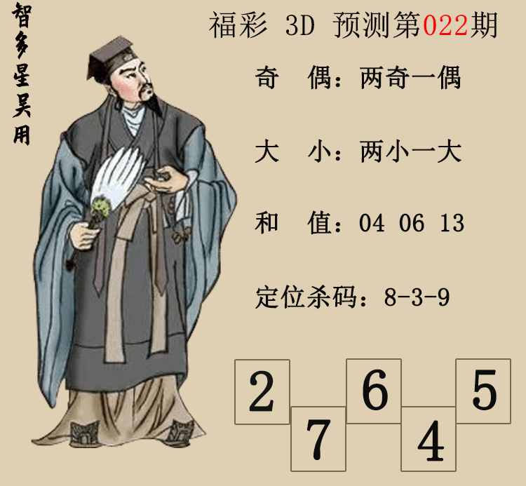 • 26022期:福彩3D【智多星吴用】预测图 参考