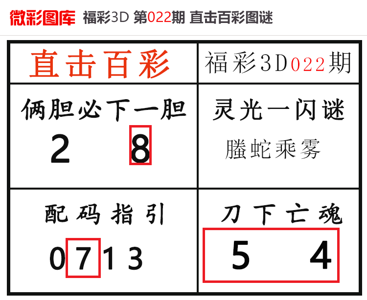 • 26022期:福彩3D【直击百彩】微彩图谜 上期杀码红、胆码红5