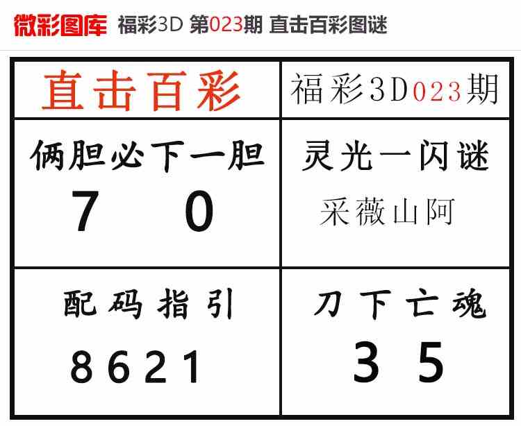 • 26023期:福彩3D【直击百彩】微彩图谜 上期配码红7、杀码红