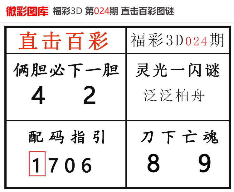 • 26103期:福彩3D【直击百彩】微彩图谜 上期配码红24、杀码红