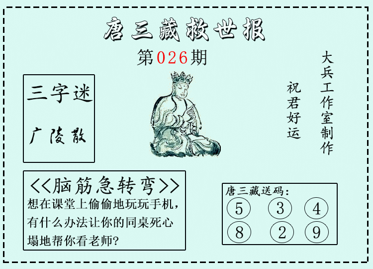 • 26097期:福彩3D【唐三藏】微彩精华字报 上期送码红89