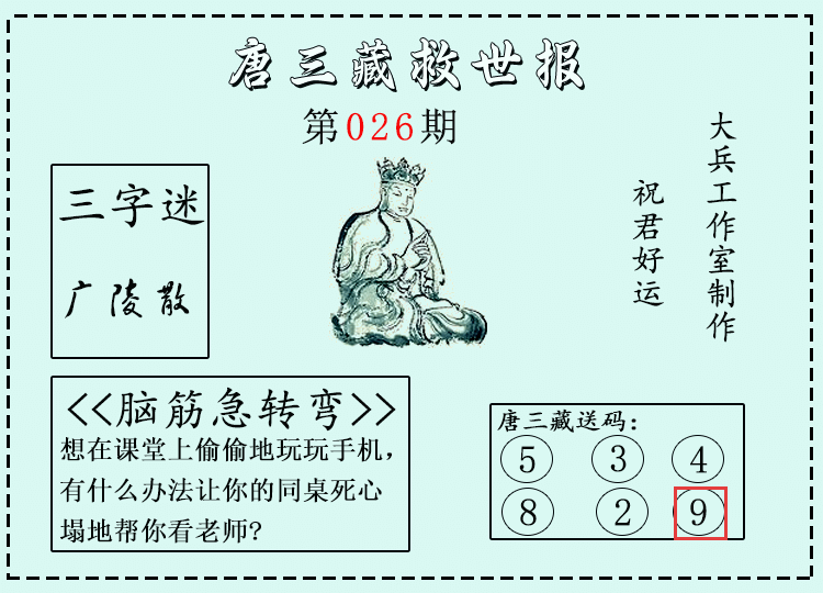 • 26027期:福彩3D【唐三藏】微彩精华字报 上期送码红9