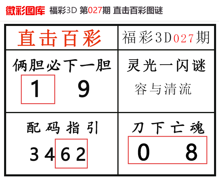 • 26029期:福彩3D【直击百彩】微彩图谜 上期胆码红7、配码红2