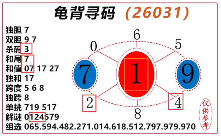 • 26097期:福彩3D【龟背寻码】精选图谜推荐 上期杀码红