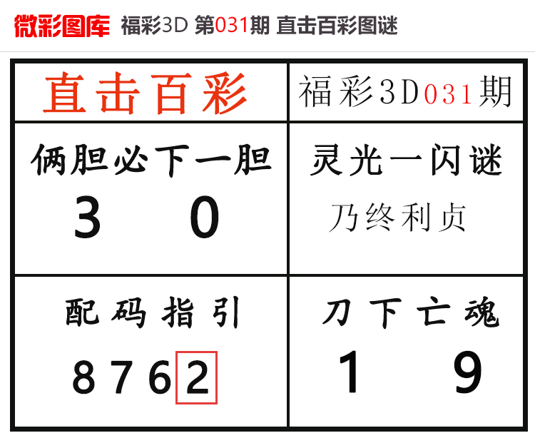 • 26032期:福彩3D【直击百彩】微彩图谜 上期配码红2