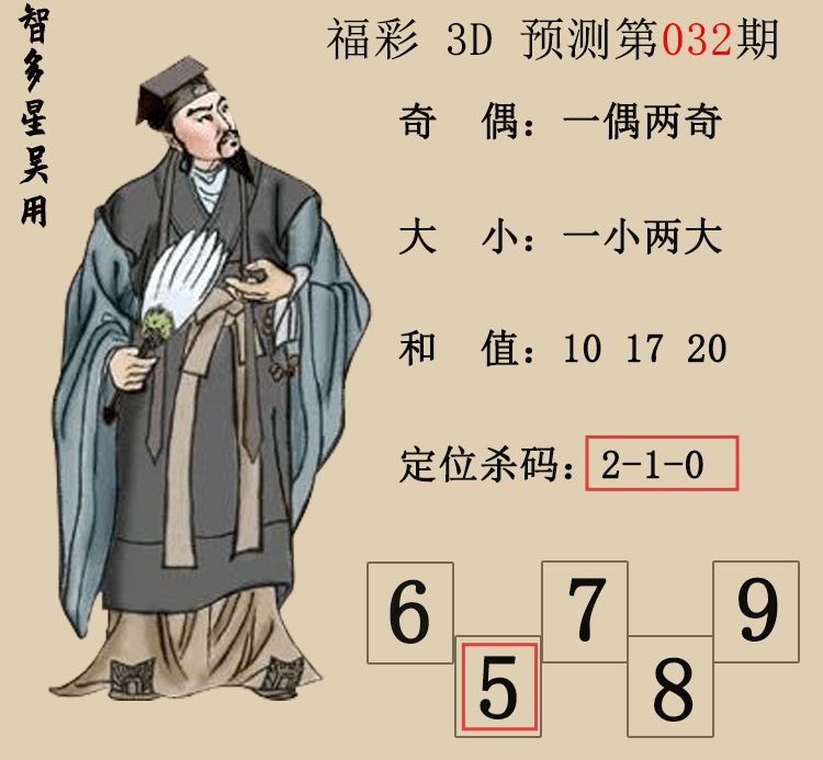• 26033期:福彩3D【智多星吴用】预测图 上期 胆码红5、杀码红