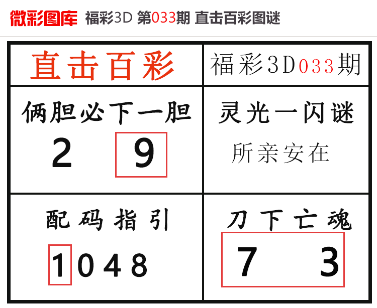 • 26034期:福彩3D【直击百彩】微彩图谜 上期胆码红9、杀码红