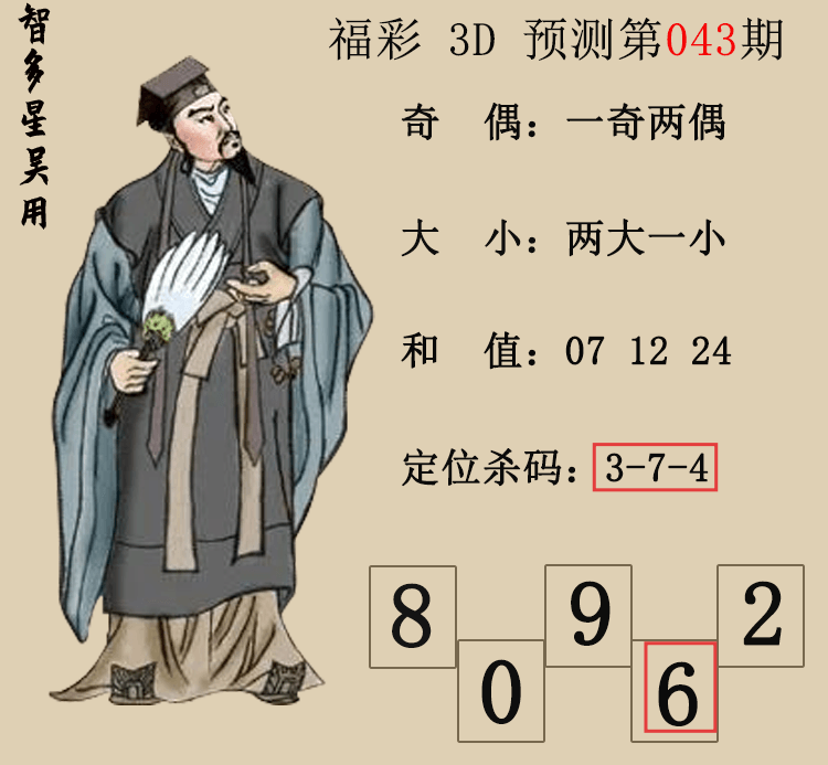 • 26044期:福彩3D【智多星吴用】预测图 上期胆码红6、杀码红