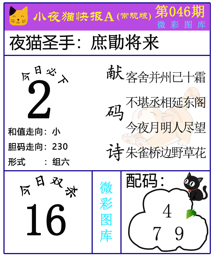 • 26046期:福彩3D【小野猫快报】精选版图库 上期双杀红
