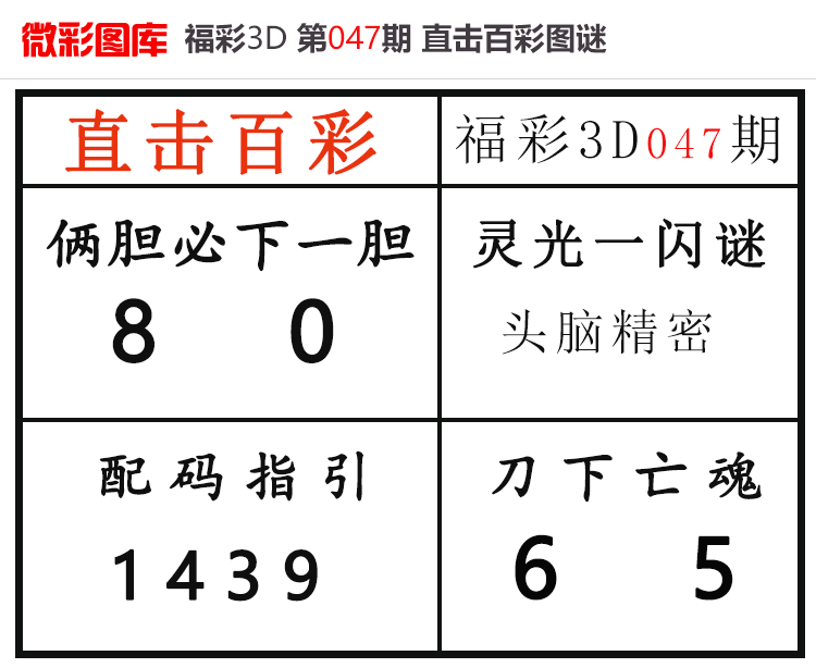 • 26047期:福彩3D【直击百彩】微彩图谜 上期胆码红9、配码红21