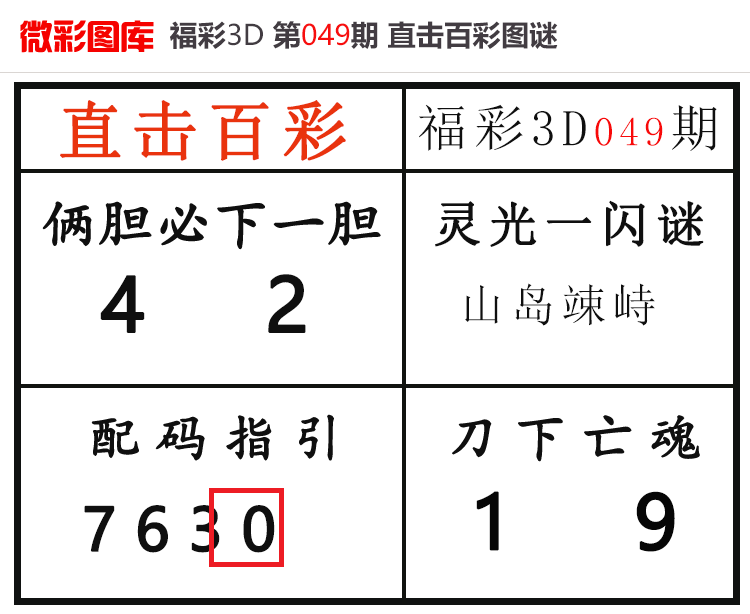 • 26050期:福彩3D【直击百彩】微彩图谜 上期配码红0
