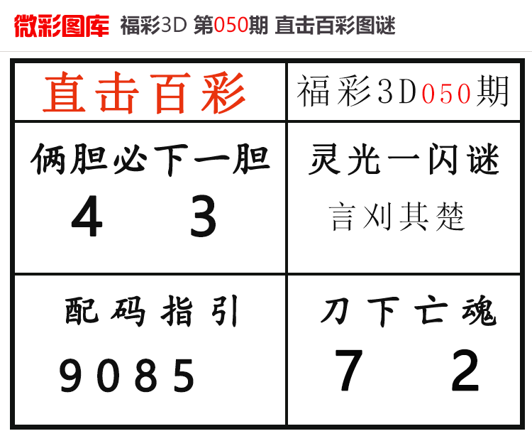 • 26055期:福彩3D【直击百彩】微彩图谜 上期配码红7、杀码红