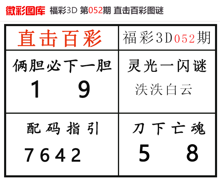 • 26052期:福彩3D【直击百彩】微彩图谜