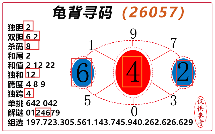 26057期:3D图谜 开264 杀码红、 胆码红62、组六红等