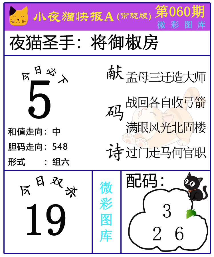 • 26060期:福彩3D【小野猫快报】精选版图库 上期配码红4