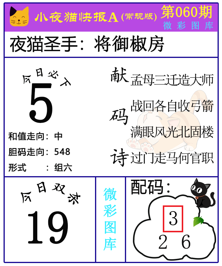 • 26061期:福彩3D【小野猫快报】精选版图库 上期配码红3