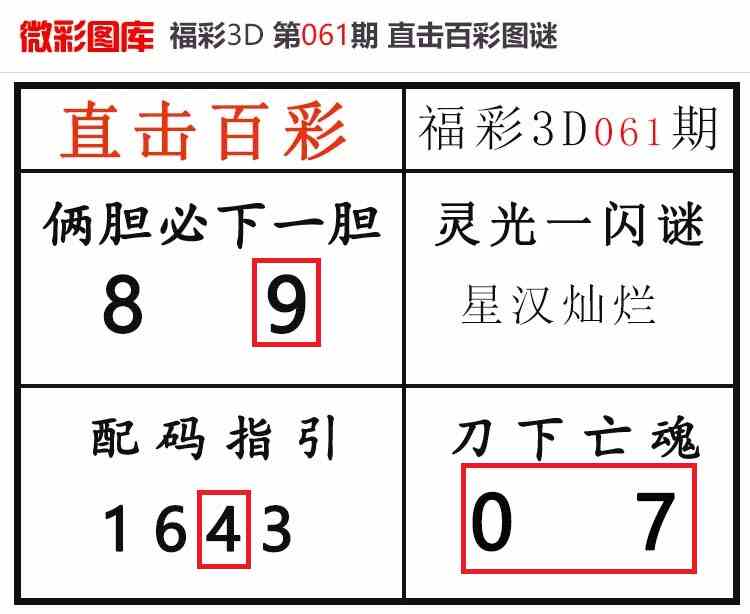 • 26062期:福彩3D【直击百彩】微彩图谜 上期胆码红9
