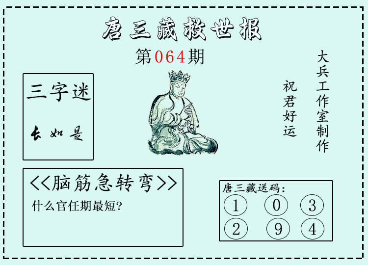 • 26064期:福彩3D【唐三藏】微彩精华字报 上期送码红1