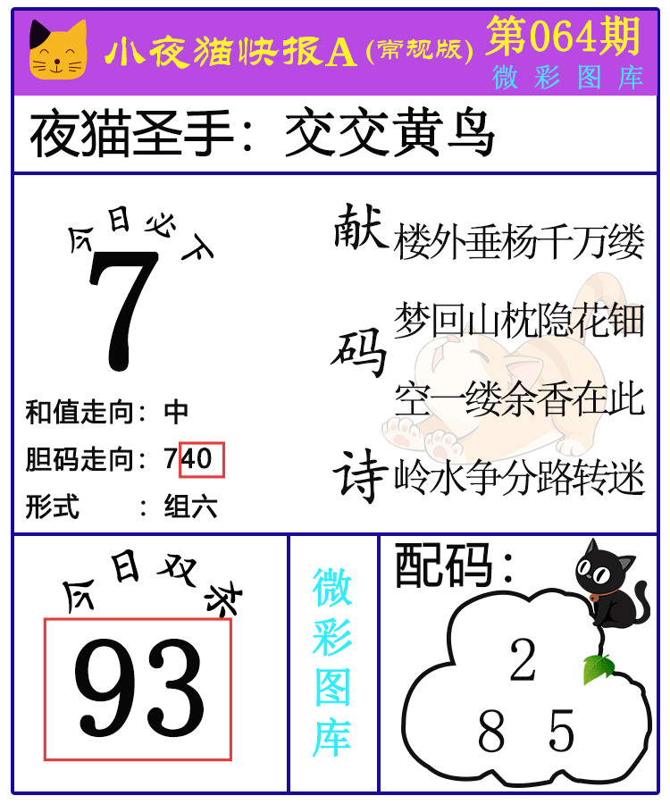 • 26064期:福彩3D【小野猫快报】精选版图库 上期双杀红