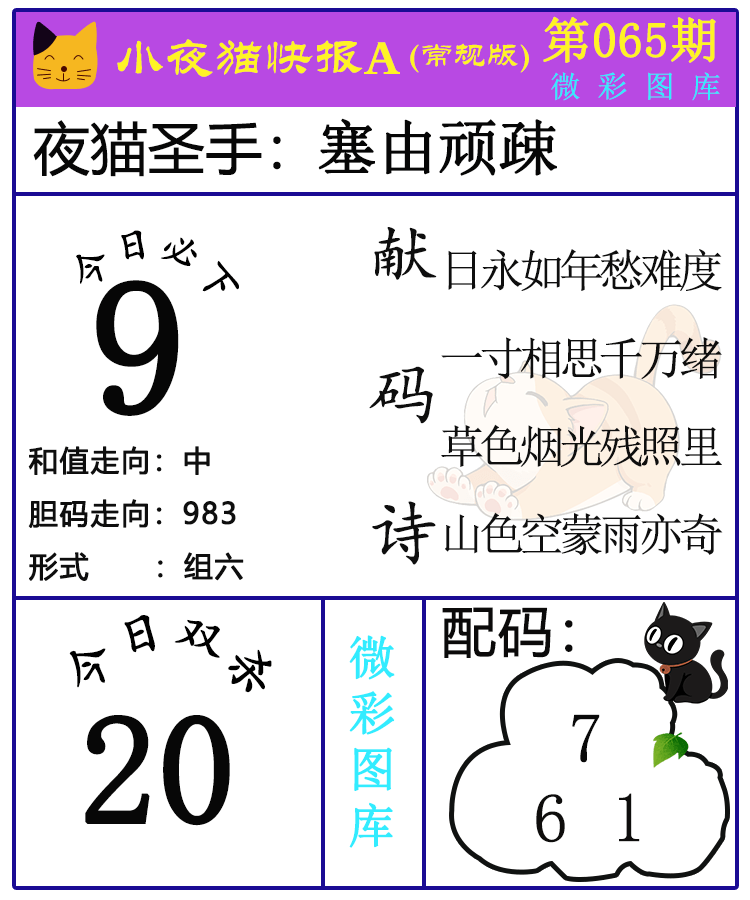 • 26065期:福彩3D【小野猫快报】精选版图库 上期双杀红