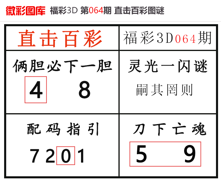 • 26064期:福彩3D【直击百彩】微彩图谜 上期配码红5、胆码红1