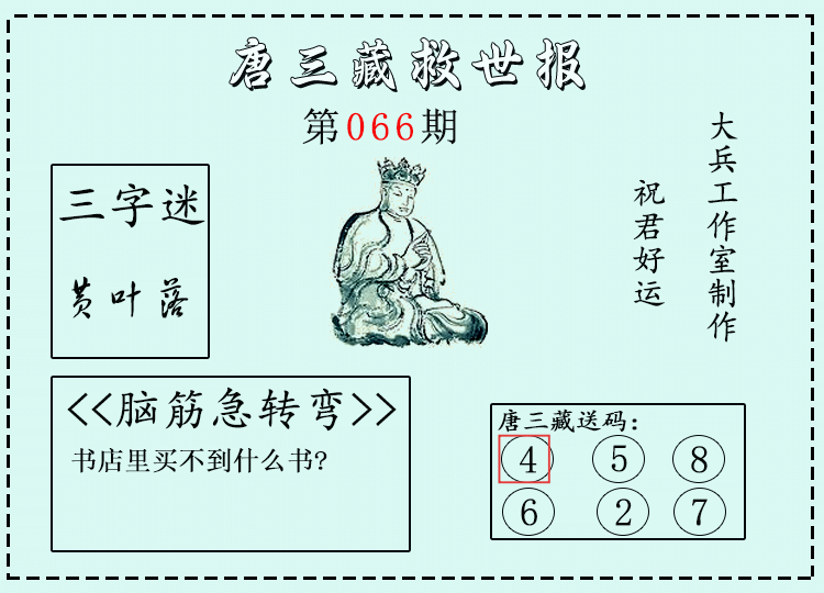 • 26067期:福彩3D【唐三藏】微彩精华字报 上期送码红4